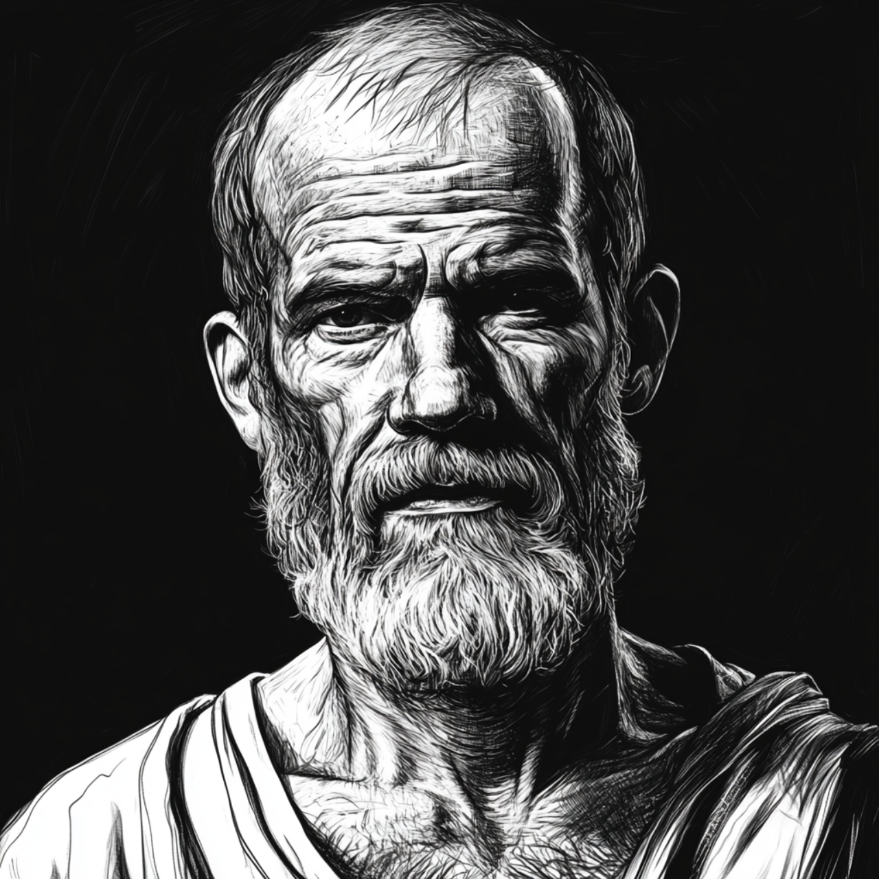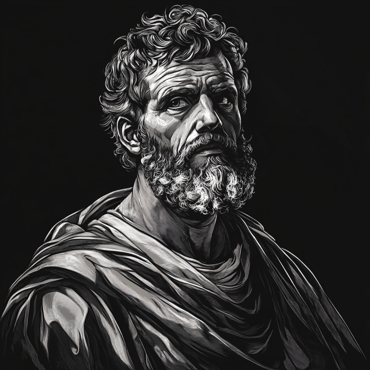 Estamos criando um personagem com peso. “Filósofo moderno” com aparência “rústica” (rugged) sugere alguém intelectual, mas vivido, talvez com barba por fazer e marcas de expressão. “Deep shadows” e “imposing composition” garantem um tom dramático, quase teatral, onde a luz e a sombra esculpem o rosto.