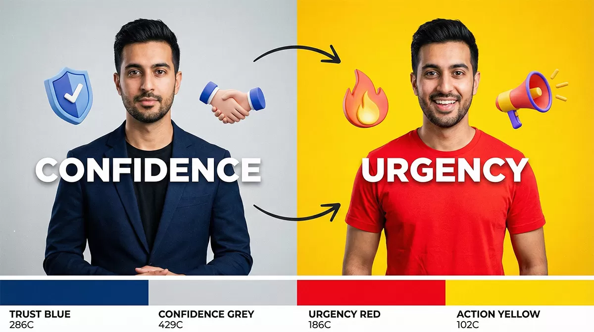 Começando pelas cores quentes (vermelho, laranja, amarelo), elas são conhecidas por despertar urgência, energia e apetite. Não é à toa que o ícone de notificação de quase todas as redes sociais é vermelho. Se você quer fazer um vídeo de alerta, uma promoção relâmpago ou chamar atenção para uma polêmica, usar uma camiseta vermelha ou colocar uma tarja vermelha no título é extremamente eficaz para parar o “scroll” (rolagem) do feed. No entanto, o uso excessivo de vermelho pode causar fadiga visual ou ser interpretado como agressividade, então use com parcimônia para destacar pontos-chave.